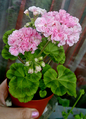 Вырастает герань быстро. За несколько недель ваше растение превратится из черенка в ветвистый куст. Несколько дольше придется возиться с семенами. Герань – любитель солнца и тепла. На северной стороне ей неуютно. Предпочтительнее оставлять ее на солнечном подоконнике. Температура в помещении поддерживается на отметке +20. Небольшие колебания в ту или другую сторону не страшны. А резкие перепады – еще как. Герань в природе растет в южных странах, к морозам не приспособлена. На лето кусты герани пересаживают в цветник. Это идет ей на пользу. Подпитка минеральными веществами из открытого грунта оздоравливает растение. Если высаживать в грунт нет возможности, почву в горшке меняют каждый год. И после пересадки раз в 2 недели делают подкормки минеральными удобрениями. Зимой прекращают. Много грунта для герани не надо. Она предпочитает небольшие емкости, зато с прекрасным дренажом. Так как обильного полива не терпит. На окно герань ставят в поддоне, через него и поливают. Нелюбовь к воде проявляется у герани и в неприятии водных процедур. Листья мыть ей опасно, сбрызгивать из пульверизатора – тоже.